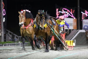 体重1トンもの大型馬が、重りをのせ最大1トンもの重量になる鉄そりを曳き、2つの障害(坂)がある直線200mのコースを走るパワフルな競馬。開拓時代の農耕に欠かせなかった馬が現代のレースへと受け継がれ、北海道遺産に認定されている。