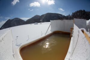 北海道で一番高い位置にある然別湖が完全に凍ったとき、雪と氷でできた幻の村(コタン)が湖の上に現れる。これが「しかりべつ湖コタン」だ。湖から切り出した透明度の高い氷を使って作られたアイスバーやアイスチャペルの美しさは言葉にできないほど。氷でできた手作りのアイスグラスで飲むお酒はとびきり美味しく、世界でもここにしかない源泉掛け流しの氷上露天風呂とその眺めに心も体も癒される。期間限定の氷の村を思いっきり堪能しよう。