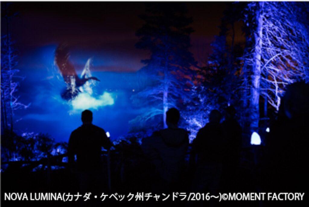 豊かな自然が広がる阿寒湖の夜の森で、最新デジタルアートと自然を融合させた体験型アートパフォーマンス「阿寒湖の森ナイトウォーク”カムイルミナ”」。真っ暗な森の中を歩き、樹々にプロジェクションマッピングで映し出される美しい映像を見ながら、神秘的な世界が体験できる。五感をフルに使った新しいパフォーマンスショーだ。自然との共生の大切さを伝える物語に誰もが魅了されること間違いなし。