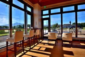 観光案内や売店、カフェ、キッズスペース、授乳室を備える施設。売店には「清里焼酎醸造所」で作られるじゃがいも焼酎をはじめとする商品の試飲もOK。カフェでは、清里産